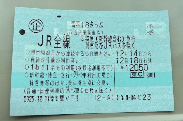 今回は商品が大幅改定されて初めての青春18きっぷの旅行を実行しました。有効期間が5日間の長い方を選択し、連日移動を続けました。キャッシュレスは前回の旅(2025年10月)に続き想像以上に好成績です。