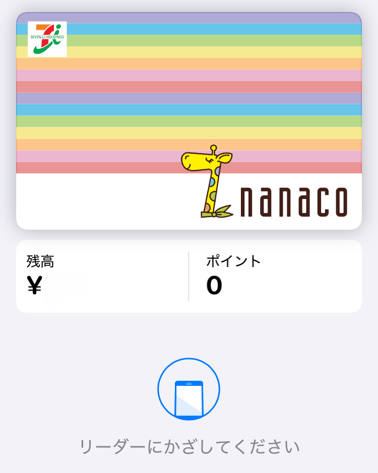 セブンイレブンの店舗でいざ支払いをします。カードを読ませると残高不足とはなるものの”残高を使う”を選択し、次はモバイルnanacoのタッチです。筆者は旧型iPHONEのためFace-IDはなくTouch-IDを使います。Walletのカードを表示し、”Touch-IDで支払う” から ”リーダーにかざしてください” が表示されてこれをレジ機にタッチするのですが、”リーダーに・・” の表示がなかなか出ません。あっという間に時間切れとなりレジ機が赤く光りました。