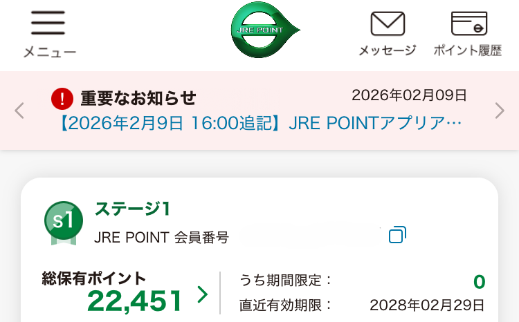 JREポイントだけは”どこかにビューーン”などポイントでしか参加できないサービスに利用するため大事にしています。