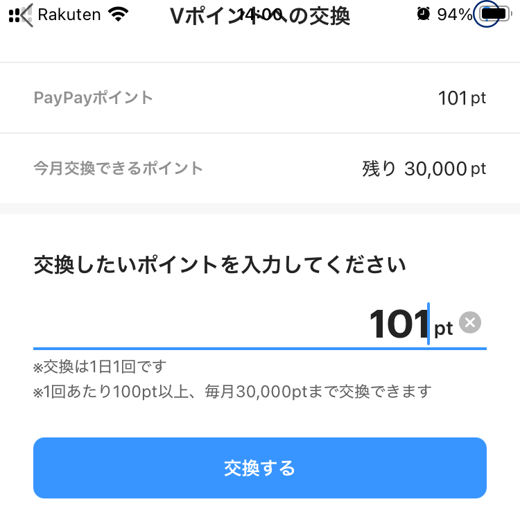 PayPayポイント→Vポイントへ交換